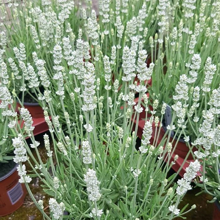 Buy Big Time White Lavender online. This is a pure white cultivar of lavender. This lavender has extra large white flowers that grow on compact gray-green foliage. It blooms earlier than other cultivars of lavender and continues to produce them into fall. Excellent for cut flowers!