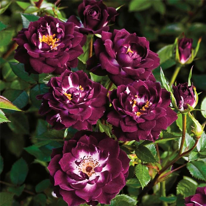 Buy Diamond Eyes™ Miniature Shrub Rose online. Diamond Eyes™ Miniature Shrub Rose produces an abundance of dark purple flowers with contrasting white eyes. Appropriately named, this color contrast will be sure to delight pollinators and neighbors as they come to admire this startling beauty. These double flowers rest on top of glossy, dark green leaves through the spring and summer months. It makes an excellent rose for foundation plantings, mass plantings, or that amazing specimen needed for a tight space.