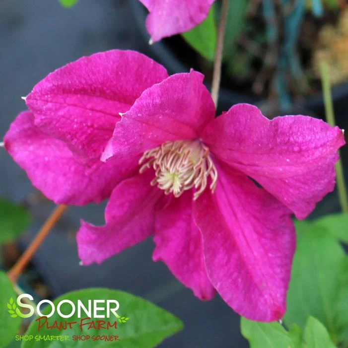 Buy Ernest Markham Clematis online. Is an easy-to-grow, perennial vine draped with large red-violet flowers in summer. Blooms on new wood. Provide part-sun for the top growth and shade for the root system.