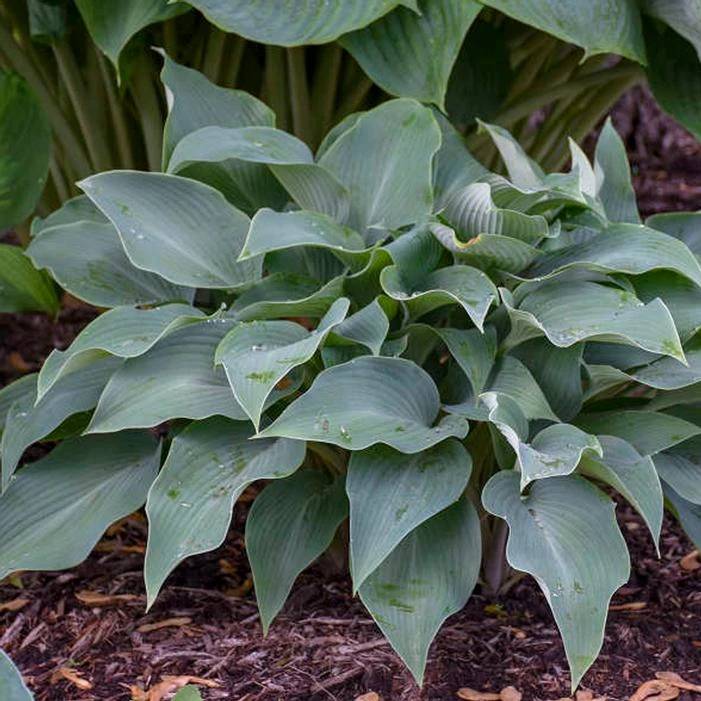 Buy Halcyon Hosta online. Chalky-blue colored, ribbed leaves. Tolerates some sun. Violet-blue flowers. Excellent plant for edging or a shaded border. Slug resistant.