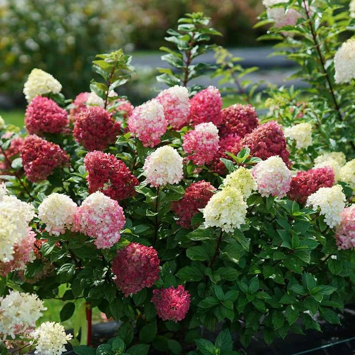 Buy Little Lime Punch™ Hydrangea online. A unique and beautiful plant. Similar to Little Lime® Hydrangea with its useful, compact stature and emerging lime green blooms, but it differs as the flowers age to pink. New blooms emerge to give you a festive mix of white, green, pink, and Hawaiian Punch-red all on the same plant. It’s hard to describe, but the plants just make you feel happy.