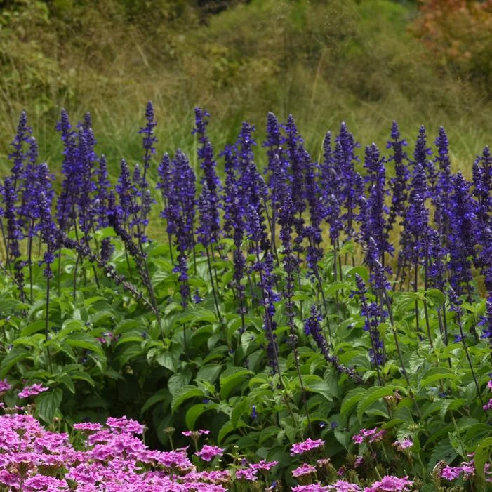 Buy Mystic Spires Salvia online. Has dark green foliage that cover this compact, well-branched plant. A free-flowering Salvia, it will be covered with true blue flowers all season long!