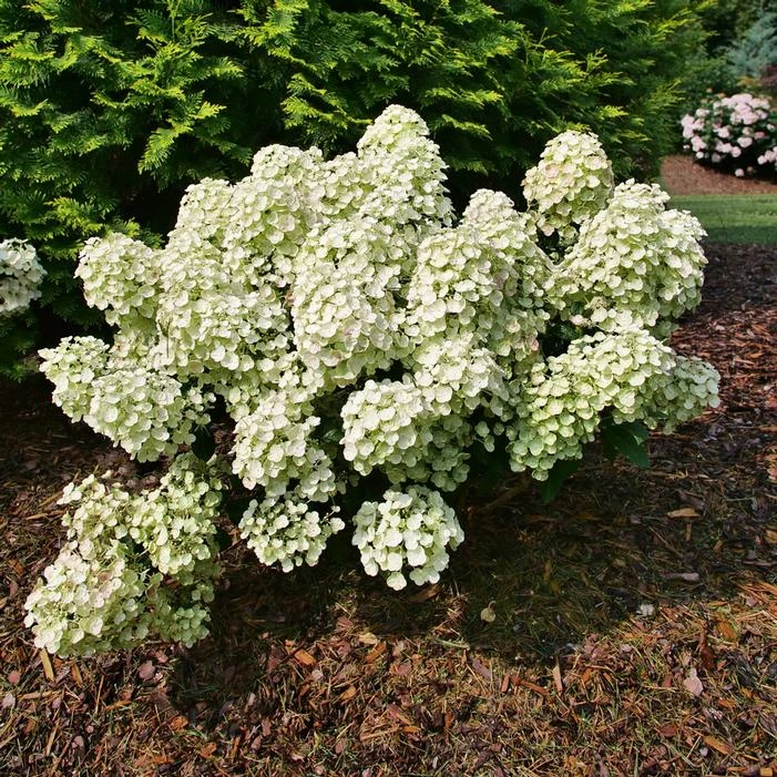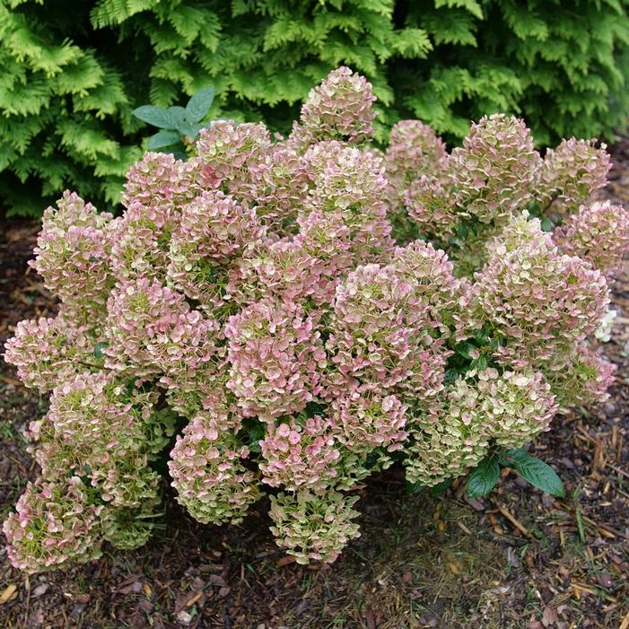 Buy Tiny Quick Fire® Hydrangea online. Tiny Quick Fire® Hydrangea is a great dwarf, compact growing H. paniculata that features green to white flowers that turn pink as the blooms mature and as the night time temperatures get colder in fall. Green serrated leaves provide a great contrasting backdrop to the flowers, and you’ll be sure to warm up your shady landscape with this amazing shrub!