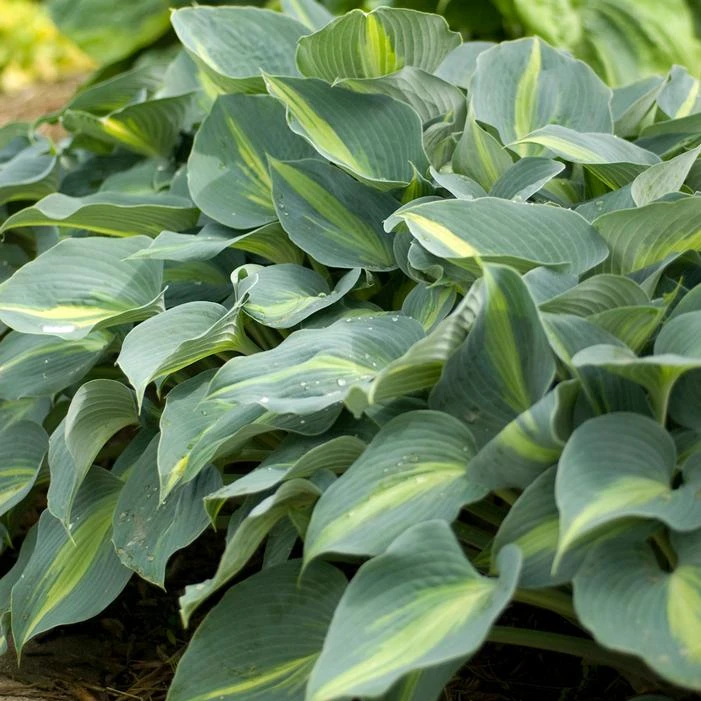 Buy Touch of Class Hosta online. Touch of Class Hosta features bluish-green leaves with yellow to chartreuse centers to each leaf. These leaves are thick, and therefore have great slug resistance. Lavender flowers rise above the variegated leaves that also attract lots of bees! It makes a nice midsize clump in any shade garden.